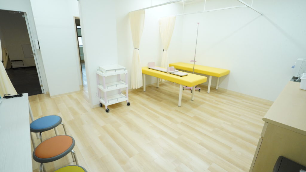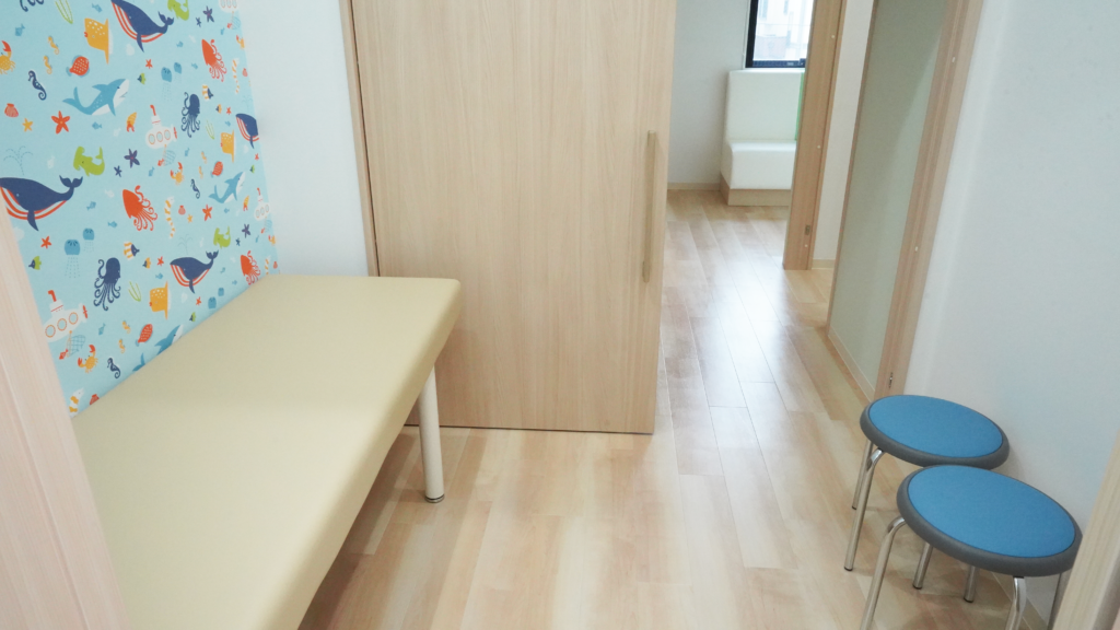 部屋ごとに異なるカラフルな壁紙は先生のお子様が選ばれたもので、院内は明るい雰囲気となっております。